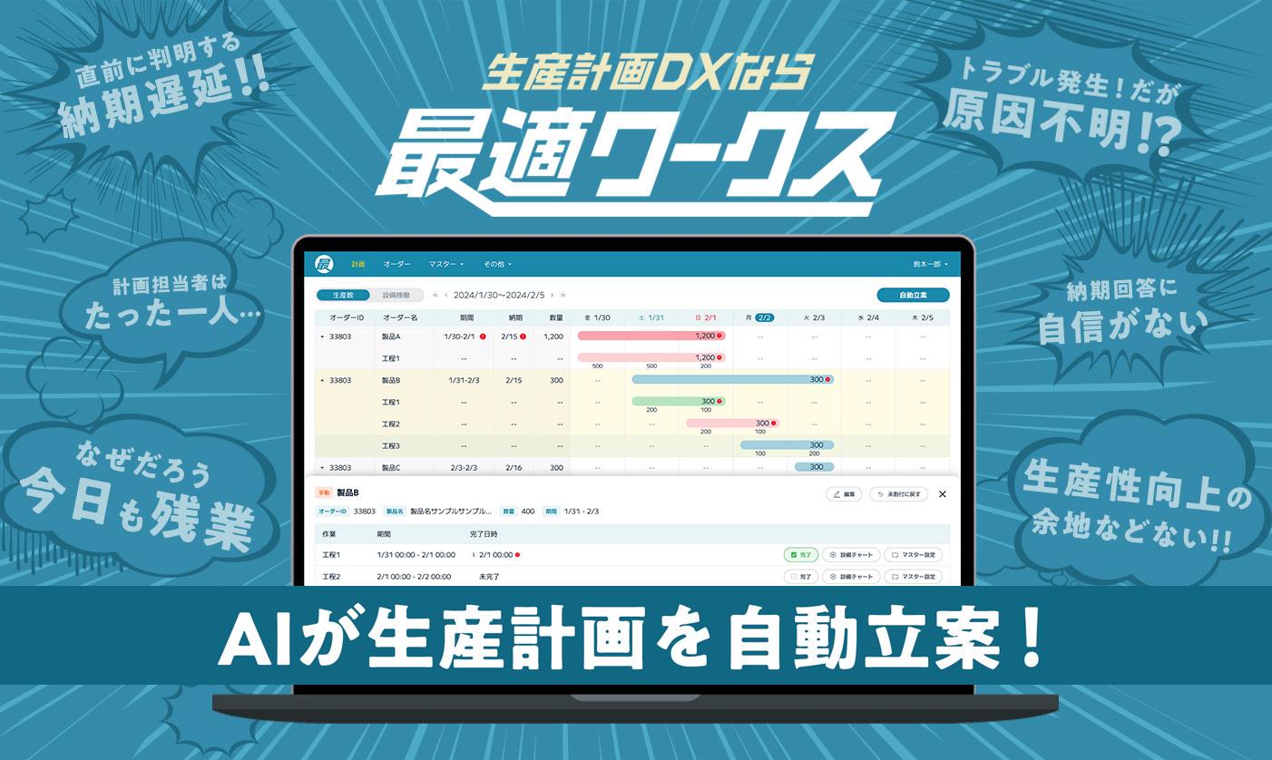 最適ワークスはAIを搭載した生産計画DXサービスです。