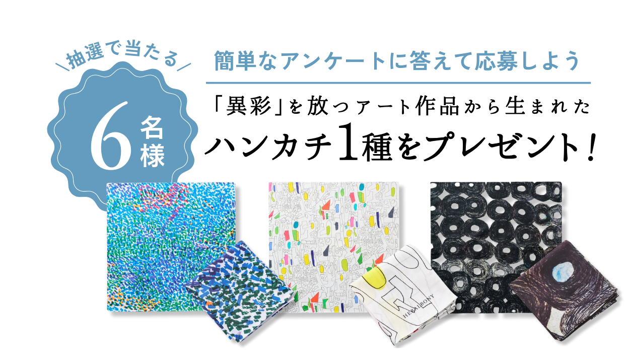 「CONNECT+」では東北+新潟の各県を1号ずつピックアップし地域の共創事例やイベント情報などを発信しております。今回、vol.7を発刊し、7県すべてを特集いたしました!東北新潟7県制覇記念として、下記アンケートにお答えいただいた方から抽選で6名様に株式会社ヘラルボニーの「異彩」を放つアート作品から生まれたハンカチをプレゼントいたします!