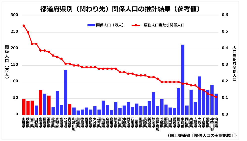 東北は、この“新しい人口の捉え方”で見たときに、姿が大きく変わる。東北は、実は関係人口の多さで全国上位にある。 理由は明快だ。震災が生んだ関わりが十年以上続き、6県すべてが新幹線で首都圏と直結するという稀有な地理構造だ。約3,600万人がいる首都圏からの距離が近く、行き来が容易であれば、“絆”は途切れにくい。